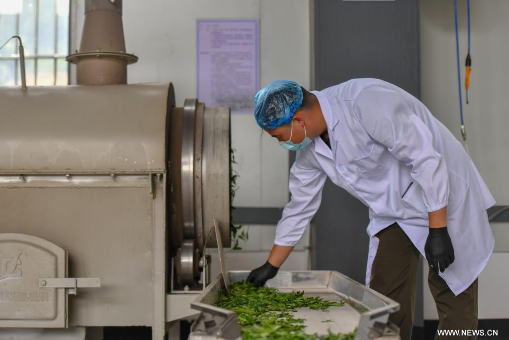 ماليبوه 11 مايو 2025 (شينخوا) في الصورة الملتقطة يوم 8 مايو 2025، عامل يعمل في مصنع لمعالجة الشاي في بلدة منغدونغ بمحافظة ماليبوه في مقاطعة يوننان بجنوب غربي الصين.