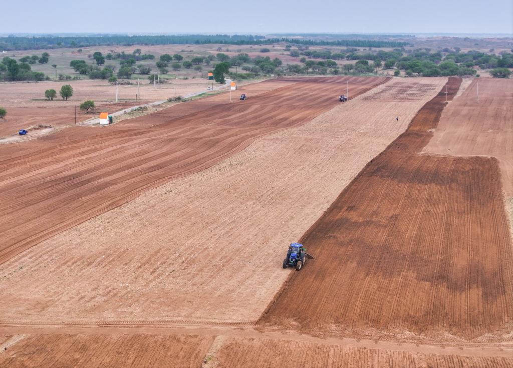 تونغلياو 11 مايو 2025 (شينخوا) في الصورة الملتقطة جوا يوم 9 مايو 2025، مشهد لأعمال الزراعة الربيعية للذرة في مدينة تونغلياو بمنطقة منغوليا الداخلية ذاتية الحكم في شمالي الصين، حيث وصلت مساحة زراعة الذرة في المدينة عام 2025 إلى 1.33 مليون هكتار، بزيادة 12 ألف هكتار عن العام السابق.
