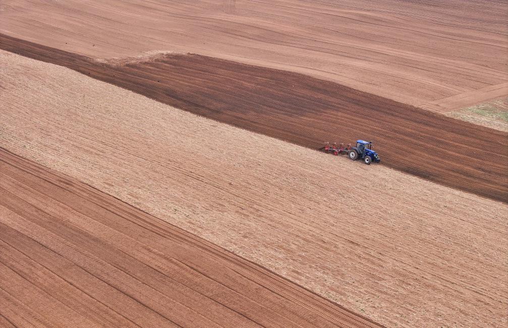 تونغلياو 12 مايو 2025 (شينخوا) في الصورة الملتقطة جوا يوم 9 مايو 2025، جرار مزود بنظام "بيدو" للملاحة عبر الأقمار الاصطناعية يعمل على زراعة الذرة في حقول بقرية في مدينة تونغلياو بمنطقة منغوليا الداخلية ذاتية الحكم شمالي الصين.