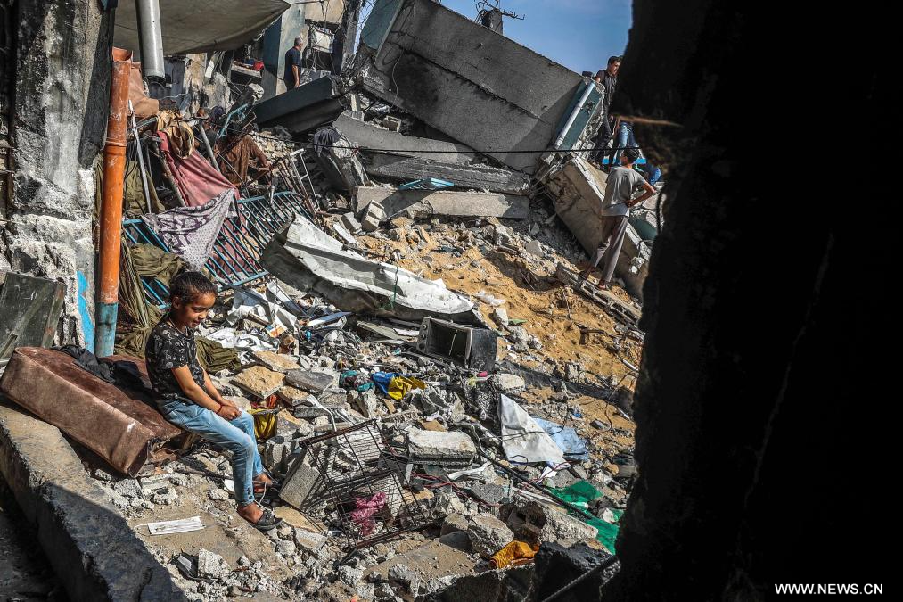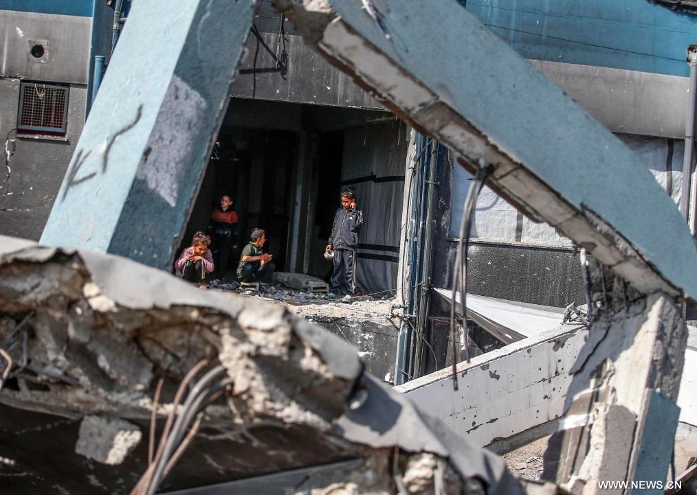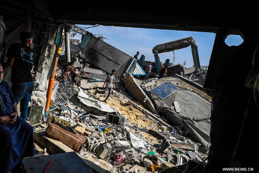 مدينة غزة 11 مايو 2025 (شينخوا) في الصورة الملتقطة يوم 10 مايو 2025، فلسطينيون يتواجدون في موقع لأحد مراكز توزيع المساعدات بعد غارة جوية إسرائيلية في مدينة غزة.