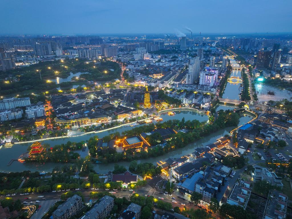 هوايآن 13 مايو 2025 (شينخوا) في الصورة الجوية الملتقطة يوم 10 مايو 2025، جزء من الممر الثقافي في مدينة هوايآن بمقاطعة جيانغسو بشرقي الصين.