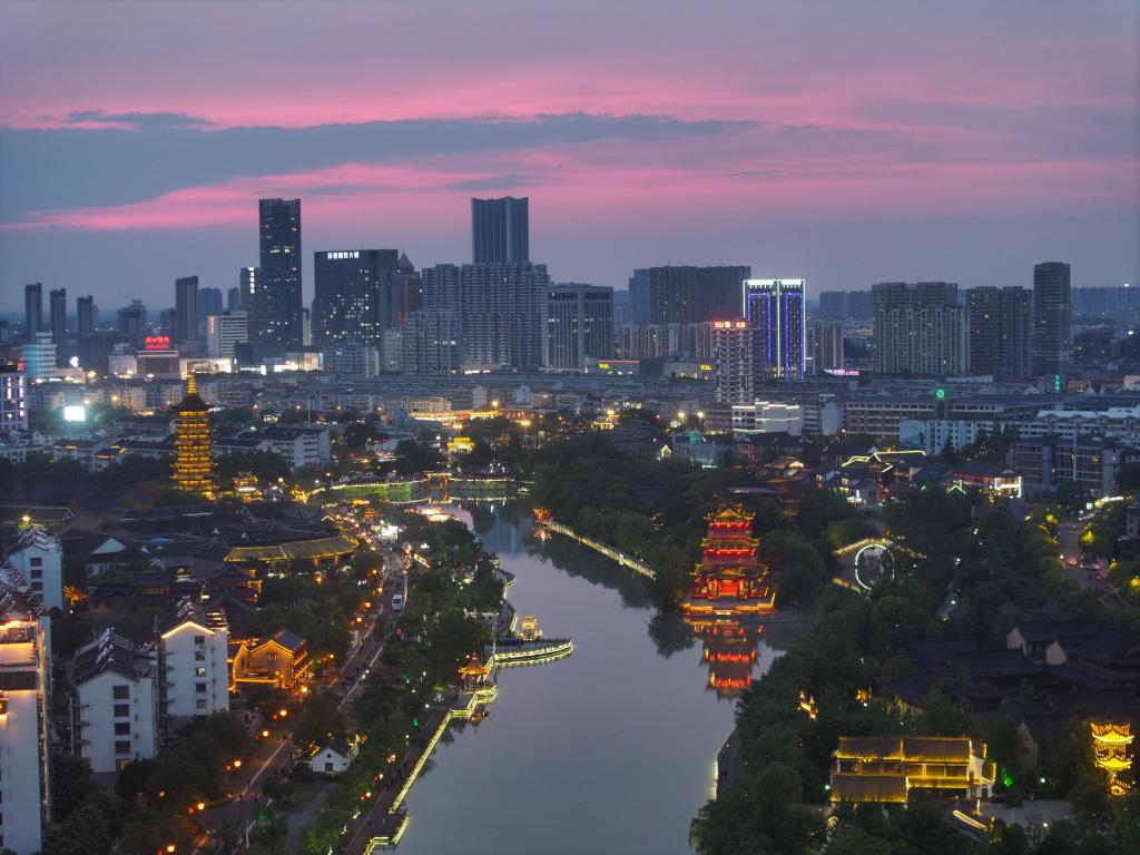 هوايآن 13 مايو 2025 (شينخوا) في الصورة الجوية الملتقطة يوم 10 مايو 2025، جزء من الممر الثقافي في مدينة هوايآن بمقاطعة جيانغسو بشرقي الصين.