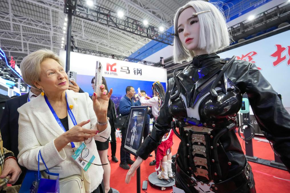 هاربين 18 مايو 2025 (شينخوا) في الصورة الملتقطة يوم 17 مايو 2025، روبوت بشري يعرض في معرض هاربين الدولي الـ34 للاقتصاد والتجارة في هاربين، حاضرة مقاطعة هيلونغجيانغ شمال شرقي الصين. وجذب المعرض، الذي افتتح في ذات اليوم، عارضين من أكثر من 110 من الدول والمناطق.