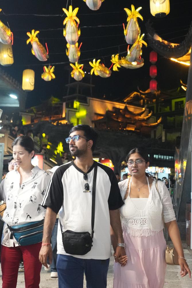 تشانغجياجيه 21 مايو 2025 (شينخوا) في الصورة الملتقطة يوم 20 مايو 2025، سياح أجانب يزورون منطقة سياحية في مدينة تشانغجياجيه بمقاطعة هونان في وسط الصين. وتعتبر تشانغجياجيه مدينة سياحية شهيرة وتجتذب السياح الأجانب باستمرار وسط جهودها لتسهيل تدابير السياحة الوافدة وتنويع المنتجات السياحية.