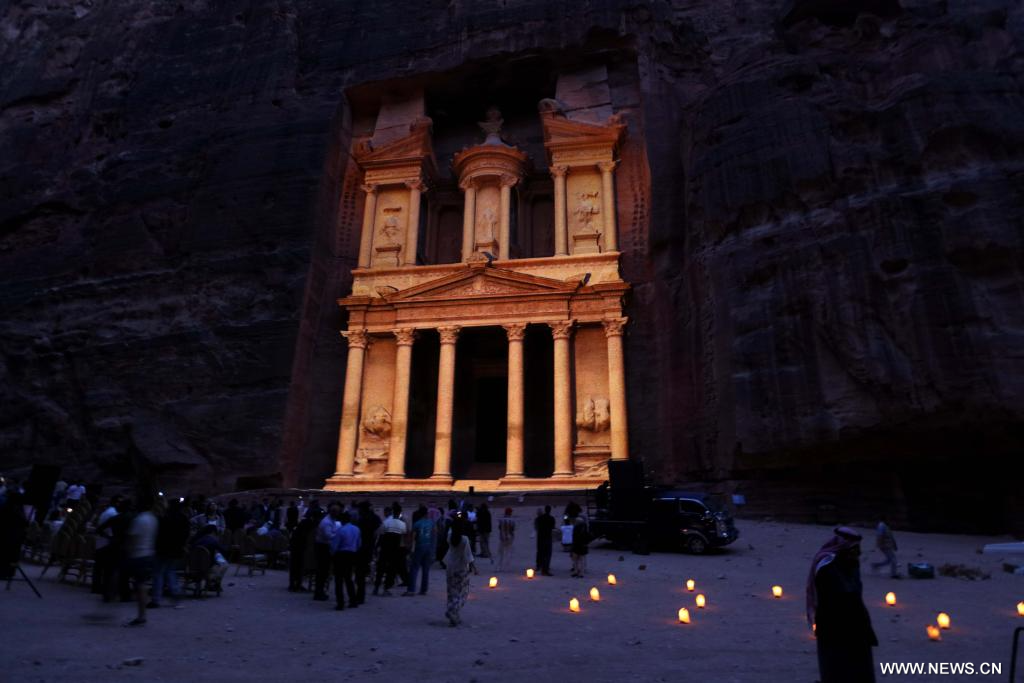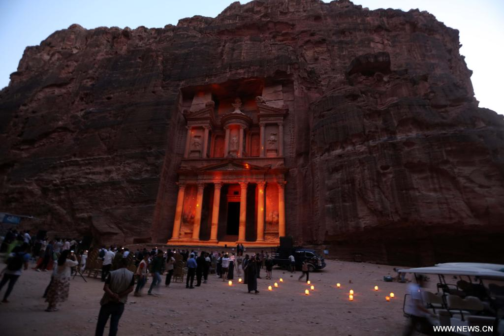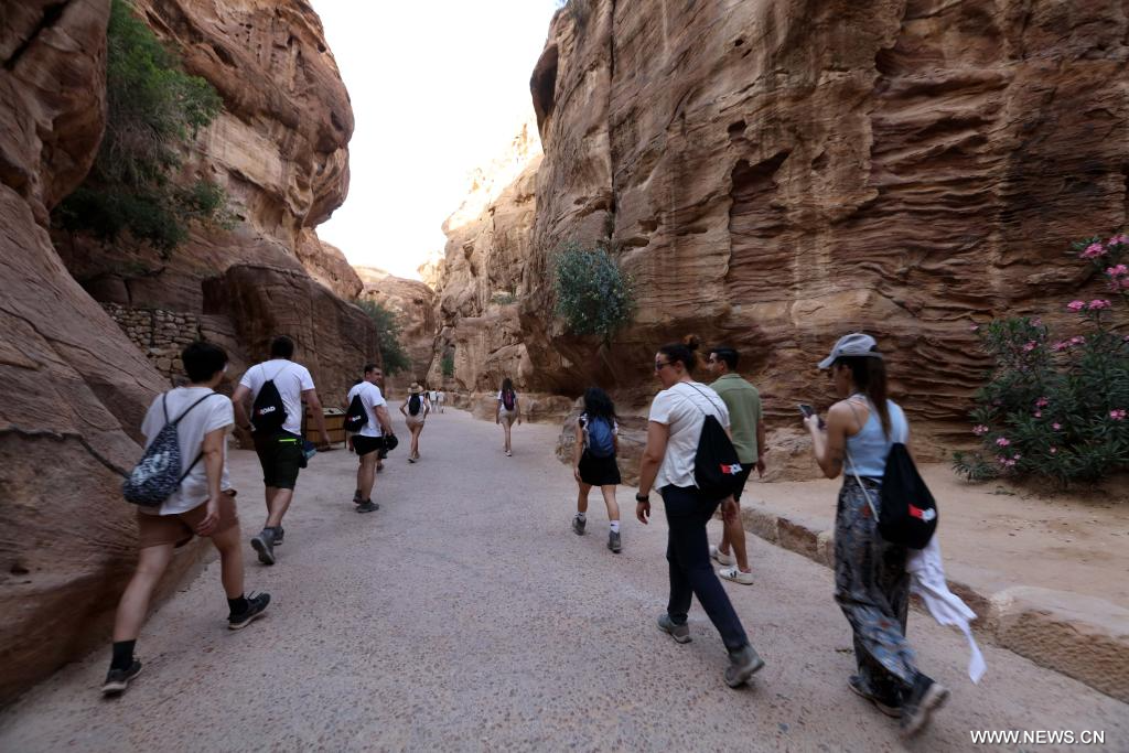 عمَّان 21 مايو 2025 (شينخوا) في الصورة الملتقطة يوم 20 مايو 2025، سياح يزورون موقع البتراء الأثري في الأردن. مدينة البتراء الأردنية هي مدينة أثرية من الحقبة النبطية منحوتة في الصخر. وتعد البتراء مدينة أثرية فريدة، ومعترف بها كموقع على قائمة اليونسكو للتراث العالمي منذ عام 1985.