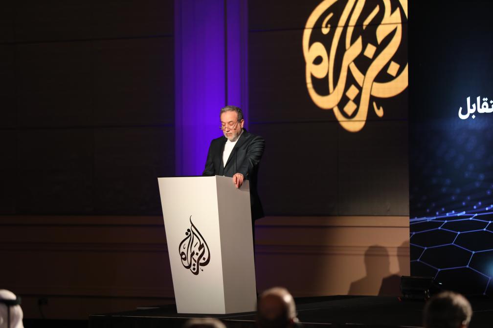 وزير الخارجية الإيراني سيد عباس عراقجي يتحدث خلال الدورة الرابعة من مؤتمر الحوار العربي الإيراني في الدوحة، قطر، 10 مايو 2025. (شينخوا)