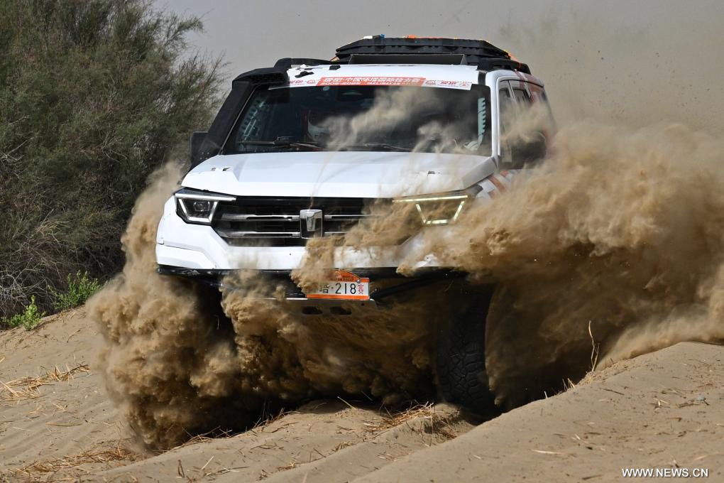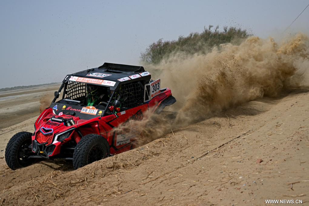 خوتان 27 مايو 2025 (شينخوا) في الصورة الملتقطة يوم 26 مايو 2025، جانب من منافسات المرحلة الخامسة من سباق رالي تاكليماكان 2025 في خوتان في منطقة شينجيانغ الويغورية ذاتية الحكم بشمال غربي الصين.
