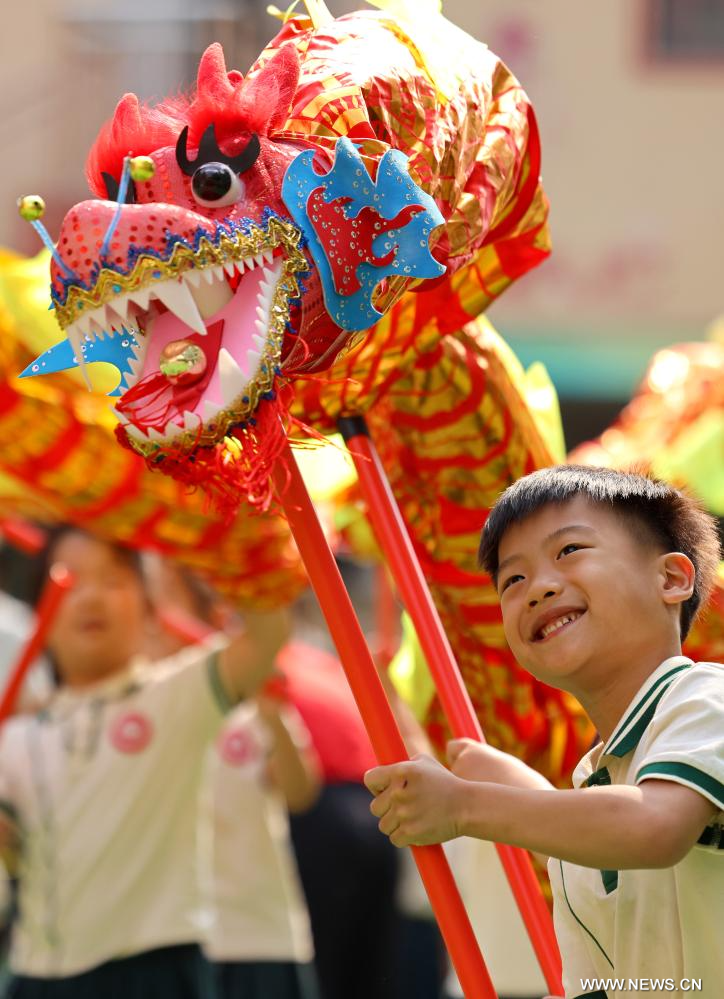 أطفال يجربون تقاليد مهرجان قوارب التنين في جميع أنحاء الصين