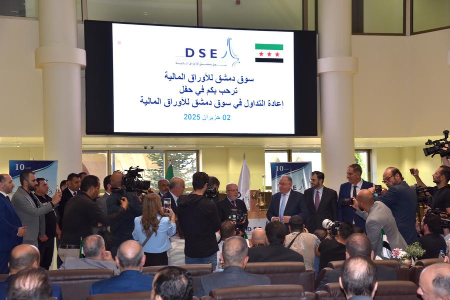 دمشق 2 يونيو 2025 (شينخوا) أعيد التداول في سوق دمشق للأوراق المالية اليوم (الاثنين) بعد توقف استمر نحو ستة أشهر، بحسب وسائل إعلام سورية.