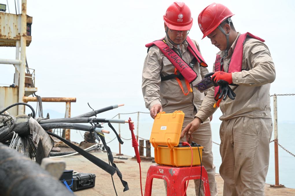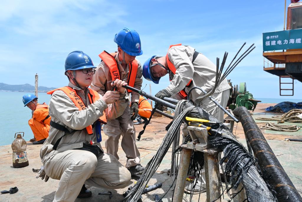 بينغتان 2 يونيو 2025 (شينخوا) في الصورة الملتقطة يوم أول يونيو 2025، موظفون يعملون في الموقع لإصلاح جزء من الكابلات البحرية في بينغتان بمقاطعة فوجيان جنوب شرقي الصين. وتم بنجاح إصلاح ذلك الجزء من الكابلات البحرية الذي تعرض للتلف في 24 مايو الماضي.