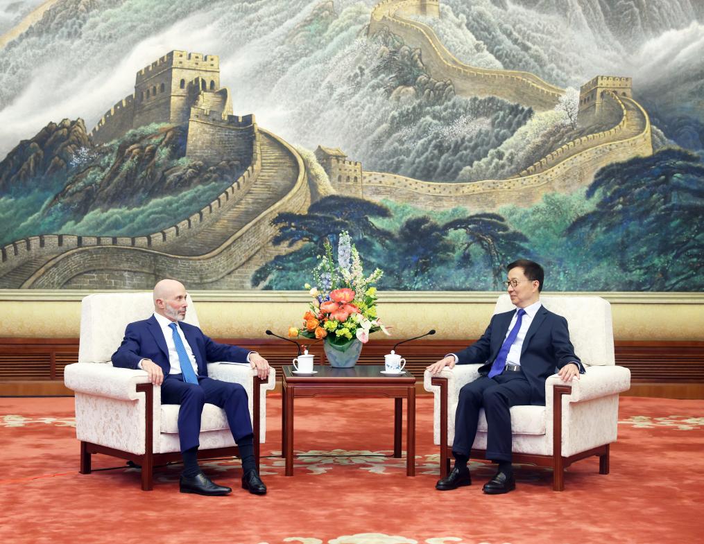 بكين 5 يونيو 2025 (شينخوا) التقى هان تشنغ، نائب الرئيس الصيني، اليوم (الخميس) أعضاء الوفد الأمريكي الذي حضر حوار المسار الثاني رفيع المستوى بين الصين والولايات المتحدة، في بكين.