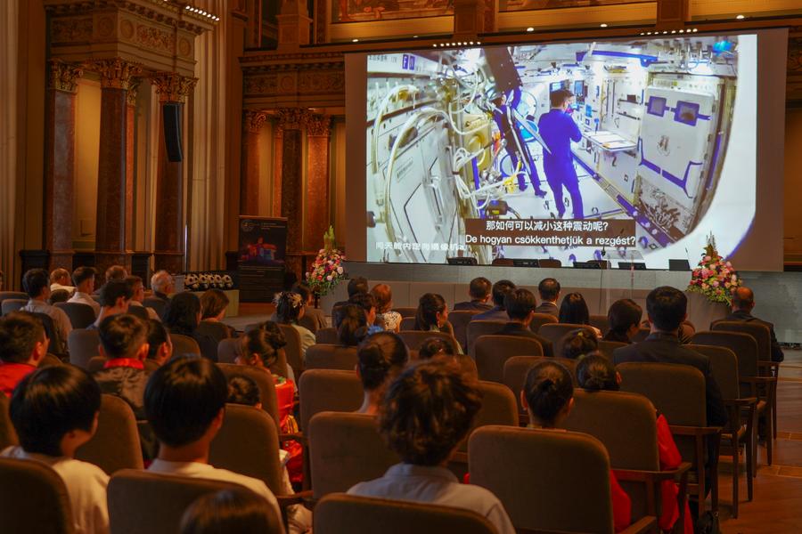 بودابست 6 يونيو 2025 (شينخوا) اجتمع أكثر من 300 طالب وعالم ومسؤول حكومي يوم الجمعة في أكاديمية العلوم المجرية لحضور جلسة أسئلة وأجوبة خاصة عن علوم الفضاء مع رواد الفضاء الصينيين على متن محطة تيانقونغ الفضائية.