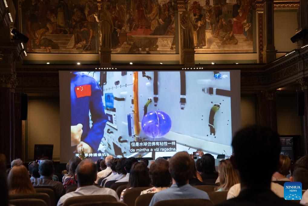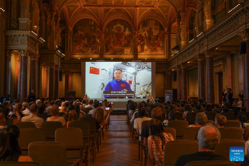 بودابست 6 يونيو 2025 (شينخوا) اجتمع أكثر من 300 طالب وعالم ومسؤول حكومي يوم الجمعة في أكاديمية العلوم المجرية لحضور جلسة أسئلة وأجوبة خاصة عن علوم الفضاء مع رواد الفضاء الصينيين على متن محطة تيانقونغ الفضائية.