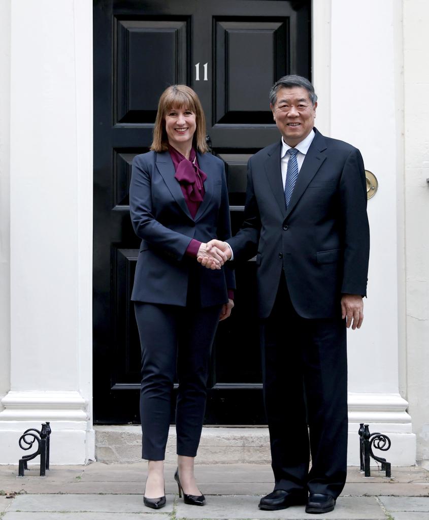 لندن 9 يونيو 2025 (شينخوا) أجرى نائب رئيس مجلس الدولة الصيني الزائر خه لي فنغ، أمس (الأحد)، محادثات في لندن مع وزيرة الخزانة البريطانية راشيل ريفز، بشأن تعزيز التعاون الاقتصادي والمالي بين الصين وبريطانيا.