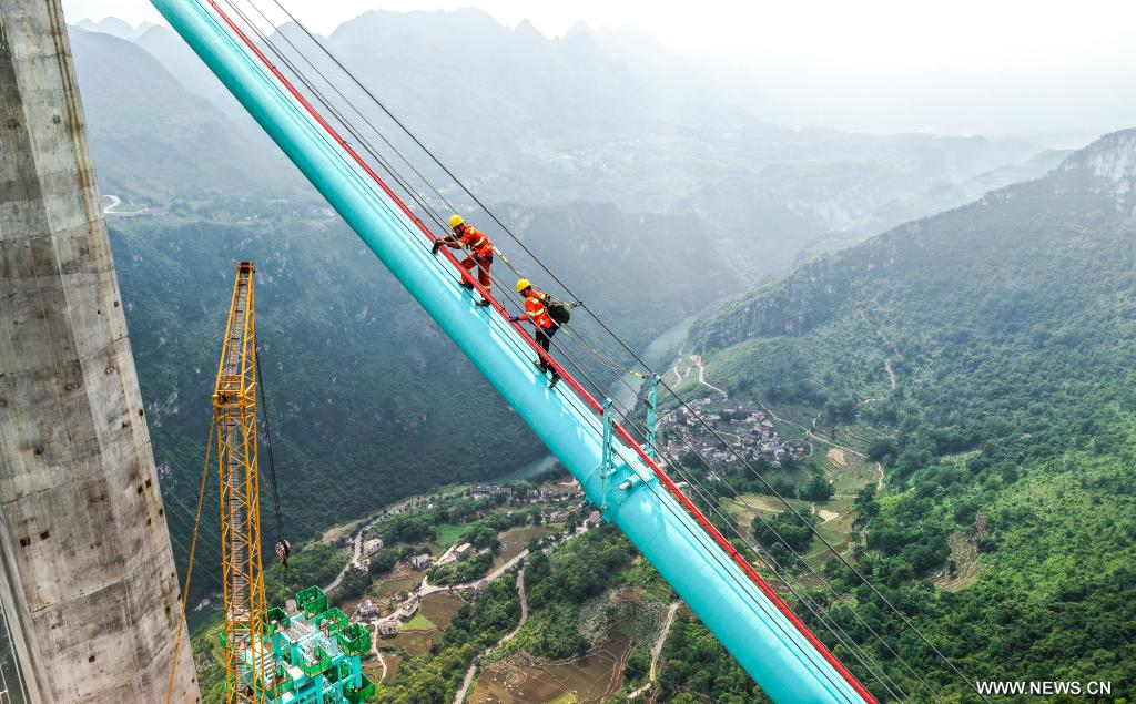 الصين تكمل بناء الهيكل الرئيسي لأعلى جسر في العالم