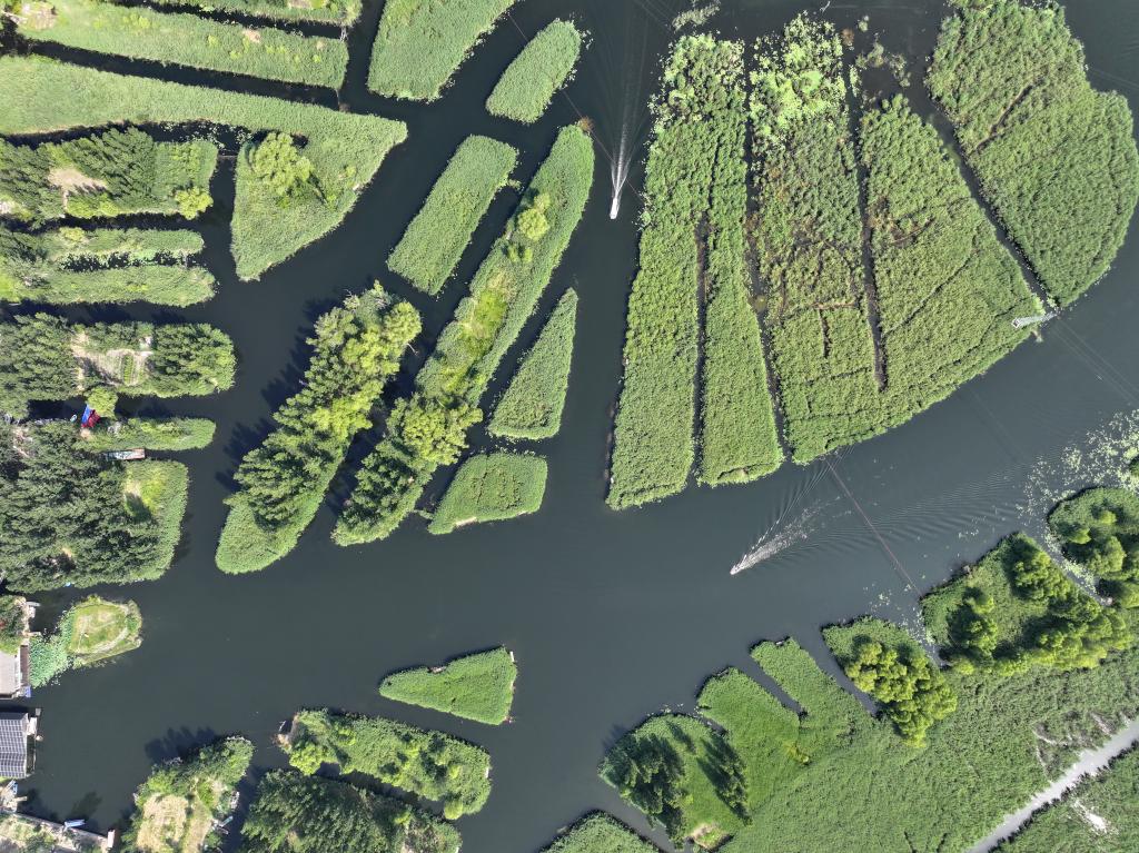 شيونغآن 12 يونيو 2025 (شينخوا) في الصورة الملتقطة يوم 11 يونيو 2025، مشهد لبحيرة باييانغديان في منطقة شيونغآن الجديدة بمقاطعة خبي في شمالي الصين.