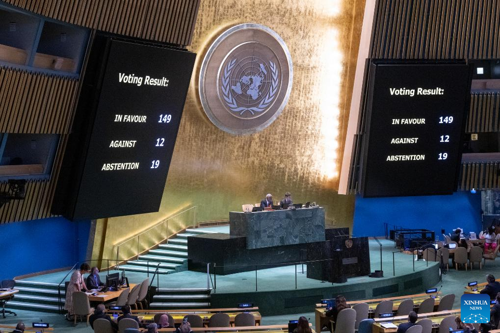 الأمم المتحدة 12 يونيو 2025 (شينخوا) اعتمدت الجمعية العامة للأمم المتحدة، في دورة استثنائية طارئة اليوم (الخميس)، قراراً يطالب بوقف فوري لإطلاق النار في غزة ووصول فوري للمساعدات الإنسانية على نطاق واسع.
