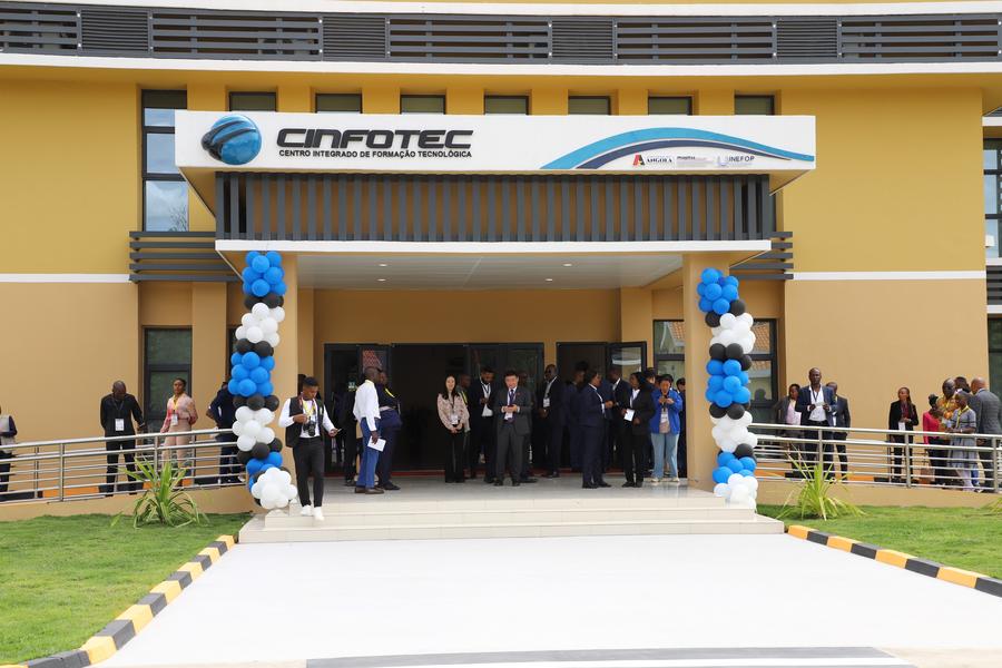 تُظهر هذه الصورة الملتقطة في 12 يناير 2024 منظرا للواجهة الخارجية لمركز تدريب مهني تبرعت به الحكومة الصينية في مدينة هوامبو بمقاطعة هوامبو، أنغولا. (شينخوا)