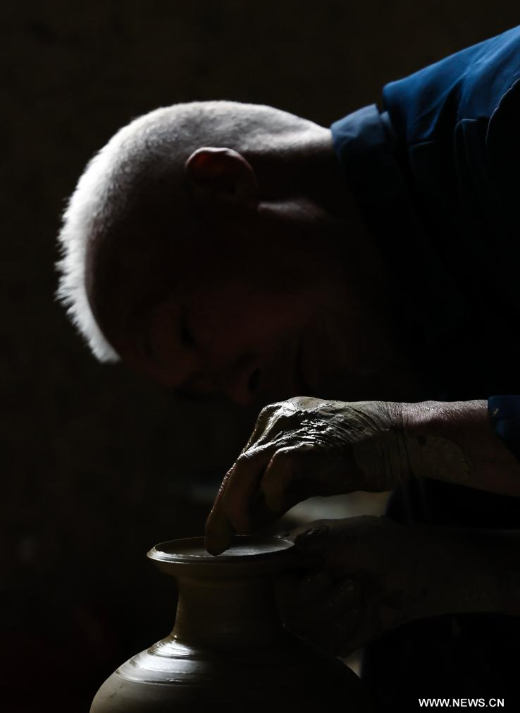 تشنتشو 21 يونيو 2025 (شينخوا) في الصورة الملتقطة يوم 17 يونيو 2025، فانغ ليانغ شنغ، وهو حرفي لصناعة الفخار يصنع قطعة من الفخار في بلدة بوله في محافظة قويدونغ بمقاطعة هونان في وسط الصين.