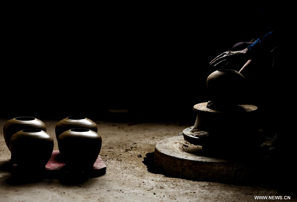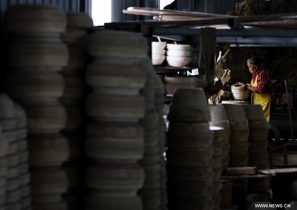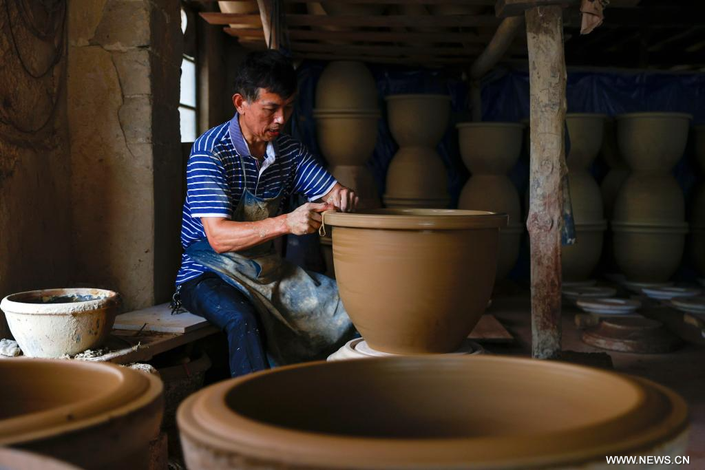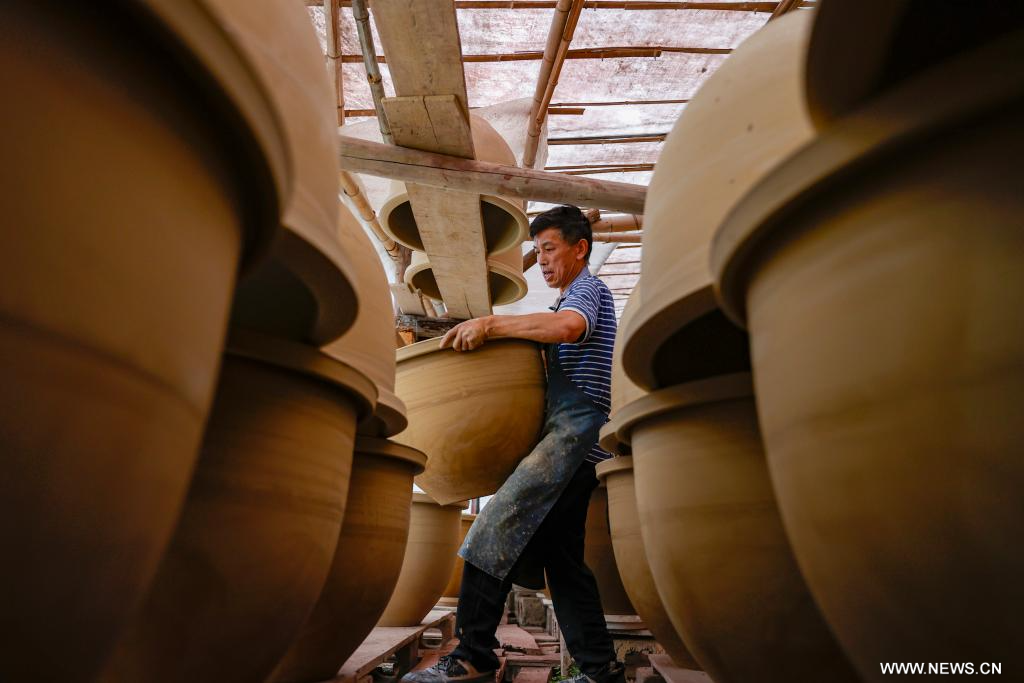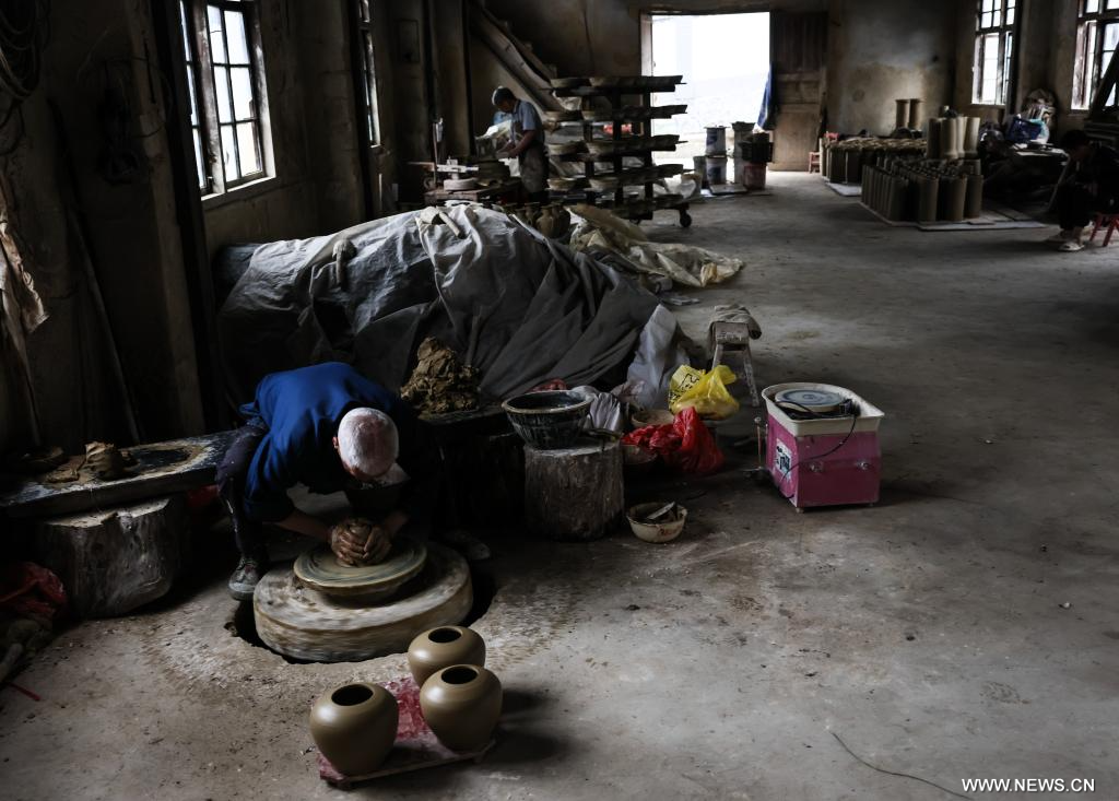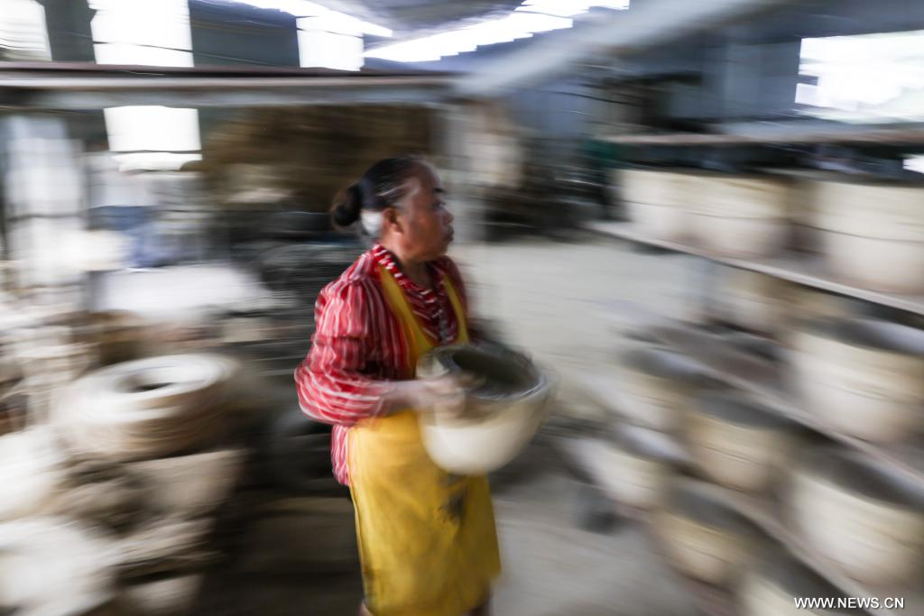 إنتاج الفخار في بلدة بوسط الصين