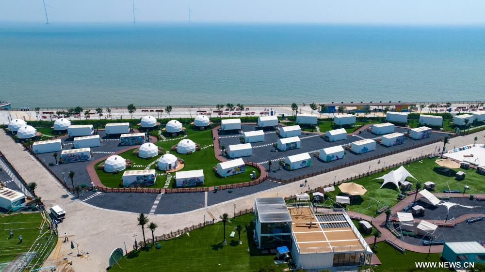 تيانجين 23 يونيو 2025 (شينخوا) في الصورة الملتقطة يوم 21 يونيو 2025، قاعدة تخييم في حديقة ساحلية بمنطقة بينهاي الجديدة في تيانجين بشمالي الصين.