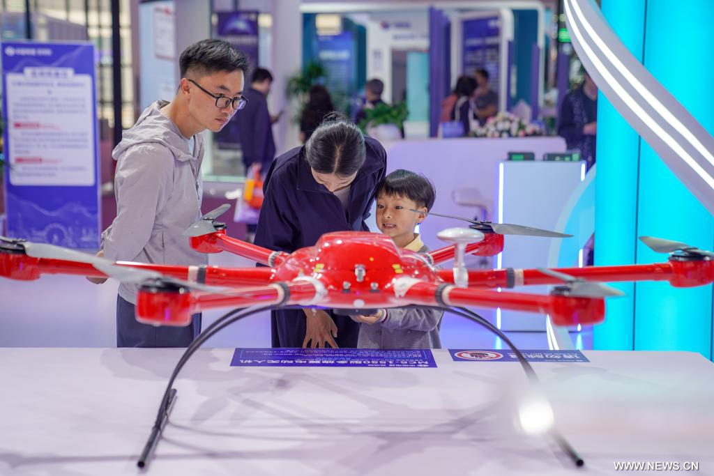 كونمينغ 23 يونيو 2025 (شينخوا) في الصورة الملتقطة يوم 22 يونيو 2025، زوار يشاهدون طائرة بدون طيار خلال الدورة التاسعة من معرض الصين-جنوب آسيا في مدينة كونمينغ، حاضرة مقاطعة يوننان بجنوب غربي الصين.