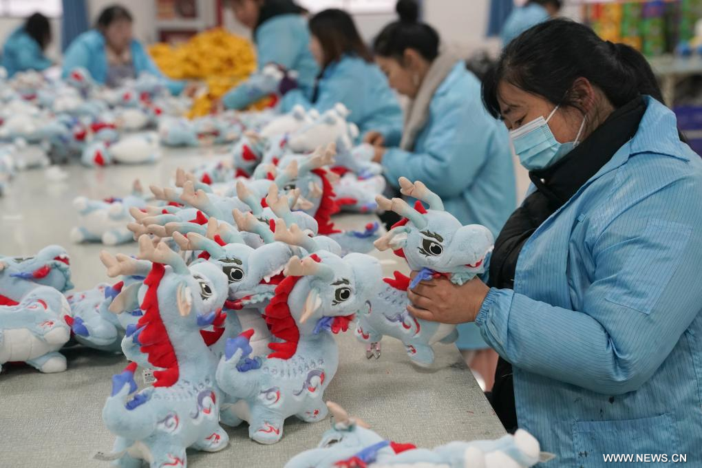 وتتضمن عملية تصنيع الألعاب القطيفية ست مراحل رئيسية، ألا وهي: القص والتطريز والخياطة والحشو والتجميع اليدوي والتعبئة والتغليف. وكلما كانت اللعبة أصغر، زادت المتطلبات التقنية. ولكل مرحلة معايير دقيقة، سواء من حيث عدد الغرز المطلوبة في الخياطة، أو كمية القطن المستخدمة في الحشو. ولذلك، يكتسب العمال الخبرة والمهارة مع مرور الوقت في كل مرحلة من مراحل الإنتاج. وقد أسهم توفر فرص العمل بالقرب من المنازل في جذب العديد من أبناء آنكانغ الذين كانوا يعملون في مناطق أخرى للعودة إلى مسقط رأسهم.