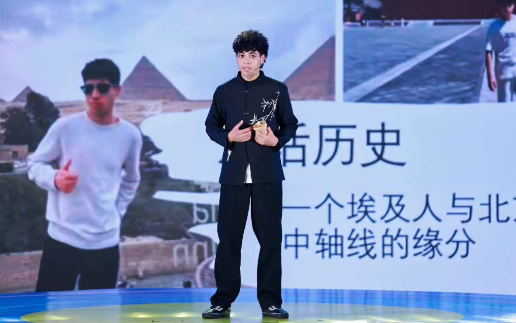ولم يكتف مروان، الطالب بالصف الثاني الثانوي في القسم الدولي بمدرسة "يوتساي" ببكين، بسرد قصة، بل صاغ لوحة شعرية حية استعرض فيها أبرز معالم العاصمة الصينية التاريخية مثل ميدان تيانانمن ومعبد السماء، وابراج الجرس والطبول المجاورة لمدرسته، في سرد شعري امتزج فيه الصوت بالضوء والتراث بالروح والحس الأدبي.
