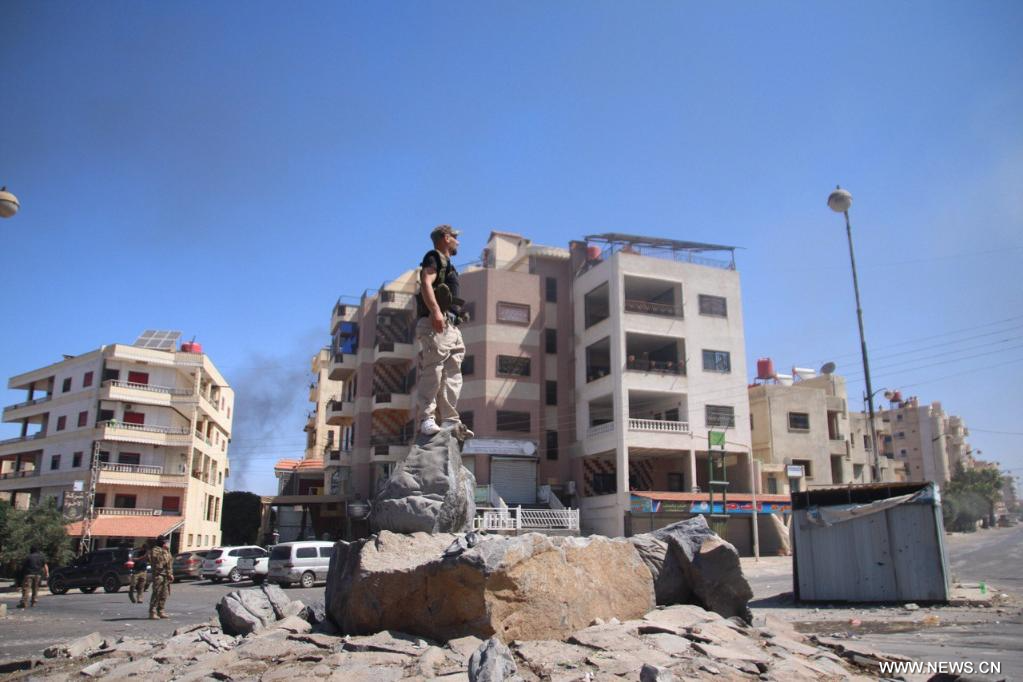 دمشق 16 يوليو 2025 (شينخوا) في الصورة الملتقطة يوم 15 يوليو 2025، قوات الأمن السورية عند دخولها مدينة السويداء جنوبي سوريا.