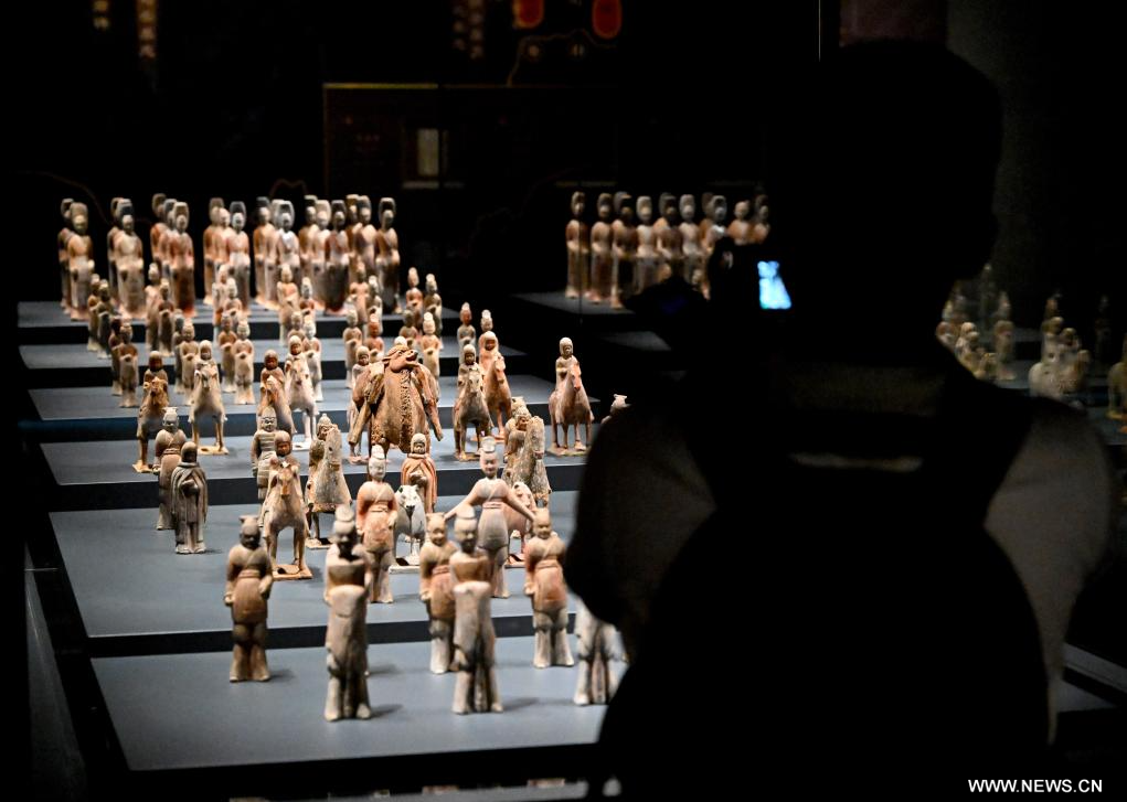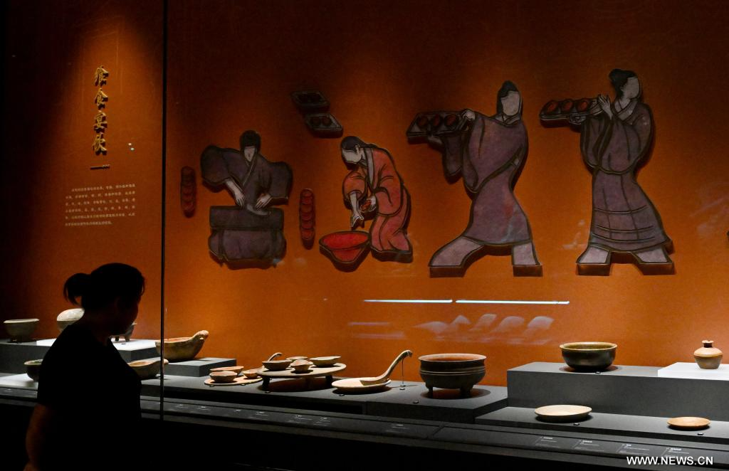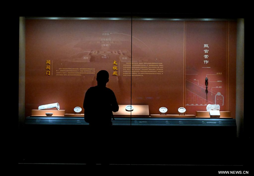 تشنغتشو 17 يوليو 2025 (شينخوا) في الصورة الملتقطة يوم 16 يوليو 2025، زائر يشاهد معرضا في متحف موقع هان-وي بمدينة لويانغ القديمة في لويانغ بمقاطعة خنان بوسط الصين. وافتتح المتحف الذي يعرض أكثر من 1300 مجموعة من الآثار الثقافية للجمهور يوم الأربعاء المنصرم.
