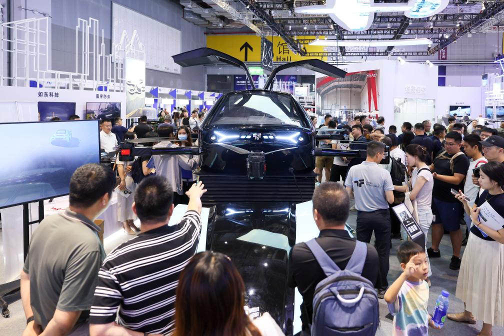 شانغهاي 24 يوليو 2025 (شينخوا) في الصورة الملتقطة يوم 23 يوليو 2025، جانب من المعرض الدولي لاقتصاد الارتفاعات المنخفضة 2025، المقام في شانغهاي بشرقي الصين في الفترة بين يومي 23 و26 يوليو الجاري بمشاركة قرابة 300 شركة أو مؤسسة.