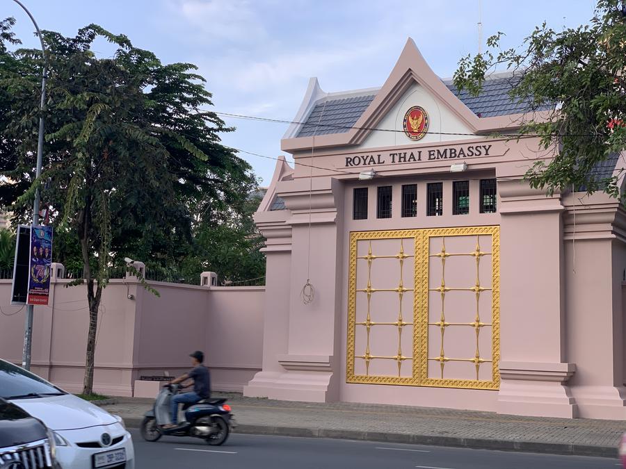 تظهر الصورة الملتقطة في 24 يوليو 2025 السفارة التايلاندية مغلقة في بنوم بنه، كمبوديا. (شينخوا)