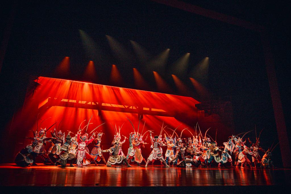 بكين 2 أغسطس 2025 (شينخوا) في الصورة الملتقطة يوم 31 يوليو 2025، جانب من عرض المسرحية الراقصة "قصائد الأبطال"، التي تؤديها فرقة مسرح قوانغتشو للغناء والرقص، في مركز تيانتشياو للفنون الاستعراضية في العاصمة الصينية، بكين.