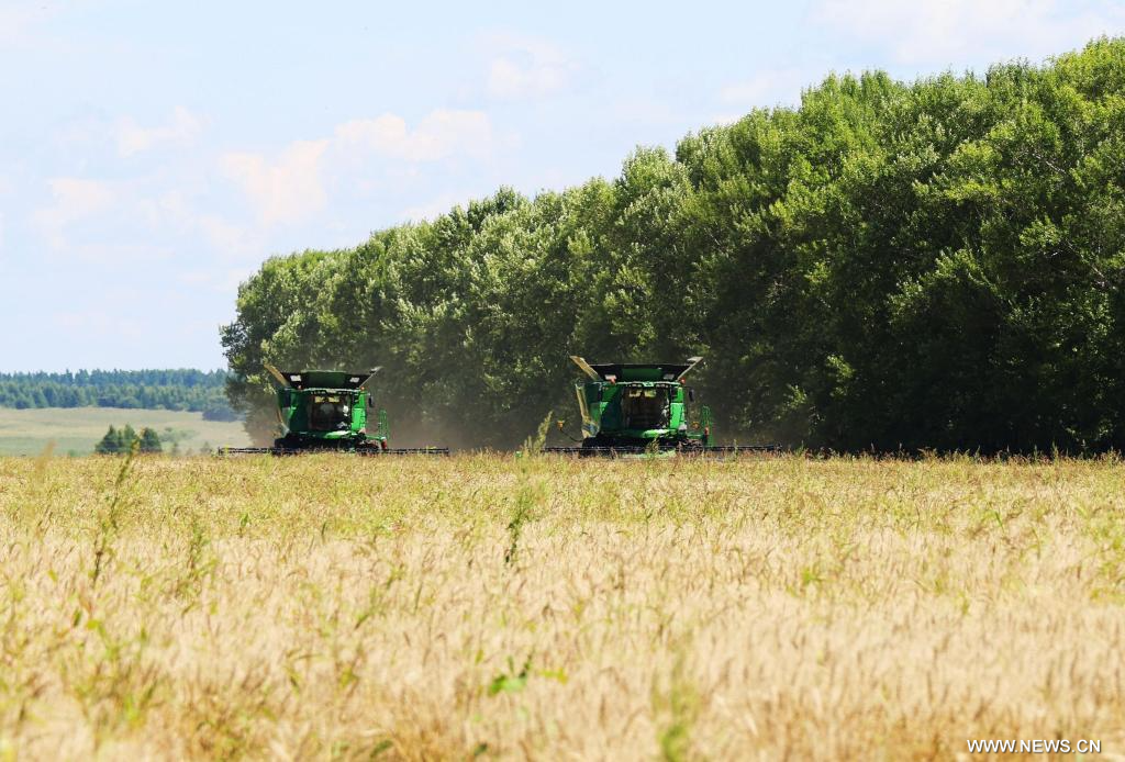 حصاد القمح في مقاطعة هيلونغجيانغ بشمال شرقي الصين