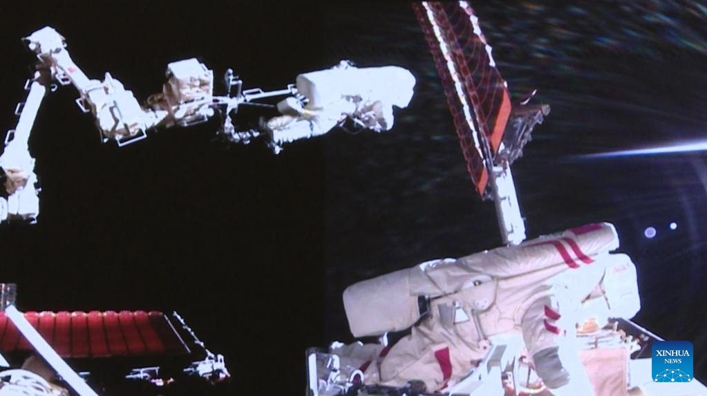 وعمل رواد الفضاء الثلاثة - تشن دونغ وتشن تشونغ روي ووانغ جيه - لما يقرب من 6 ساعات ونصف وأكملوا جميع المهام المحددة لهذه الجولة عند الساعة 10:47 مساء (بتوقيت بكين)، بمساعدة الذراع الروبوتية لمحطة الفضاء وفريق تحكم أرضي.