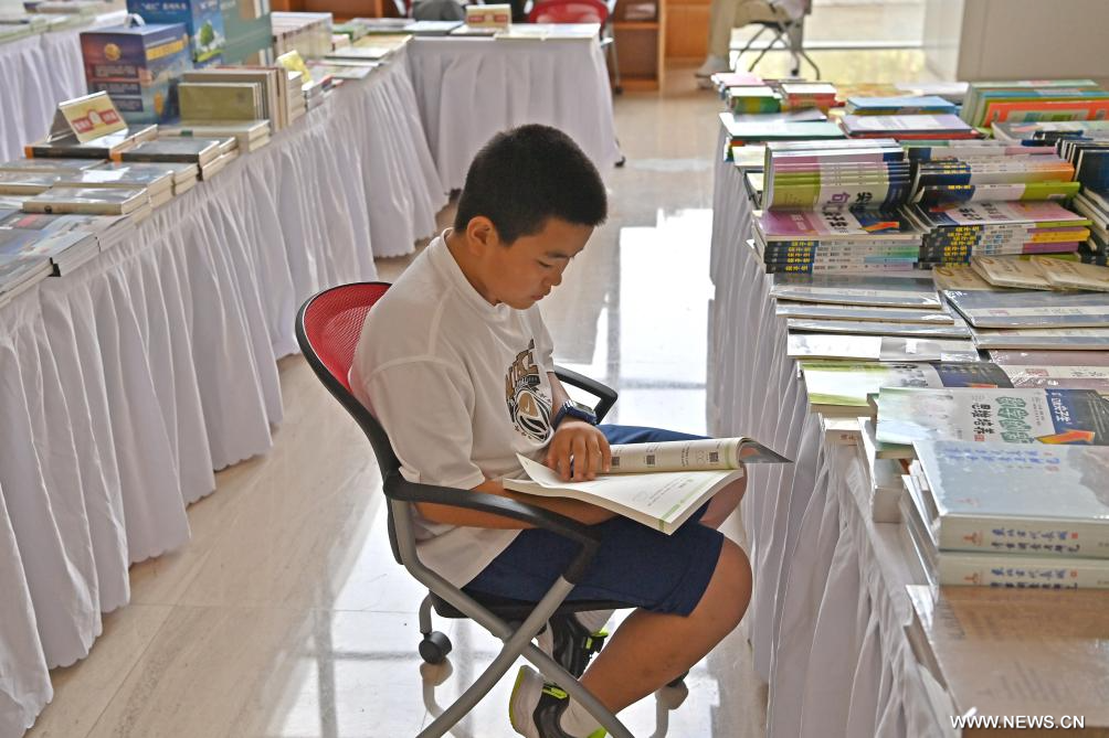 شنيانغ 16 أغسطس 2025 (شينخوا) في الصورة الملتقطة يوم 15 أغسطس 2025، طفل يتصفح كتابا خلال معرض للكتاب في مكتبة مقاطعة لياونينغ في مدينة شنيانغ بمقاطعة لياونينغ بشمال شرقي الصين. وانطلق معرض الكتاب يوم الجمعة المنصرم، ويجمع أكثر من 30 ناشرا وأكثر من 10 آلاف نوع من الكتب..