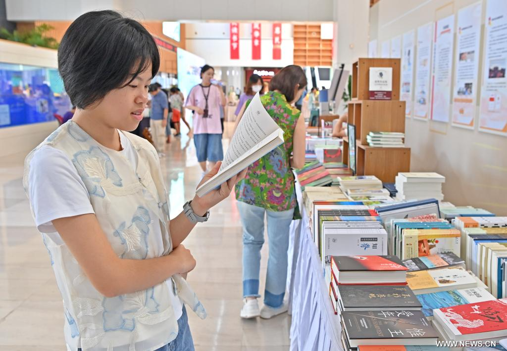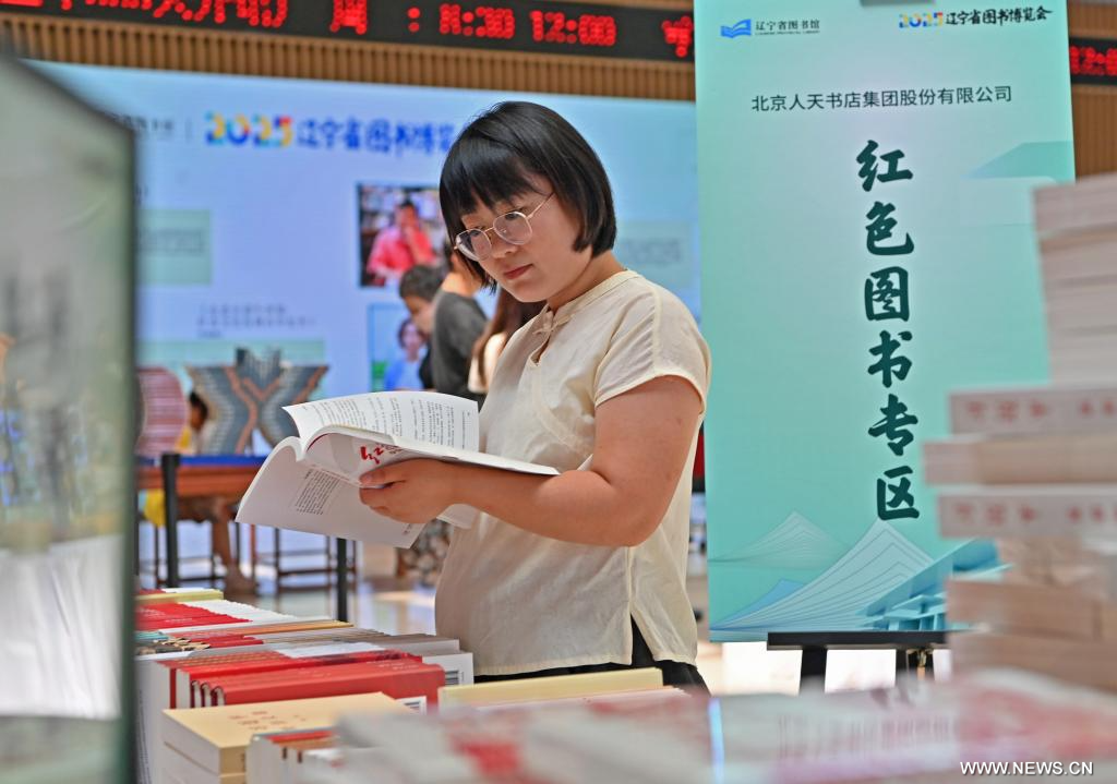 شنيانغ 16 أغسطس 2025 (شينخوا) في الصورة الملتقطة يوم 15 أغسطس 2025، إمرأة تتصفح كتابا خلال معرض للكتاب في مكتبة مقاطعة لياونينغ في مدينة شنيانغ بمقاطعة لياونينغ بشمال شرقي الصين. وانطلق معرض الكتاب يوم الجمعة المنصرم، ويجمع أكثر من 30 ناشرا وأكثر من 10 آلاف نوع من الكتب.
