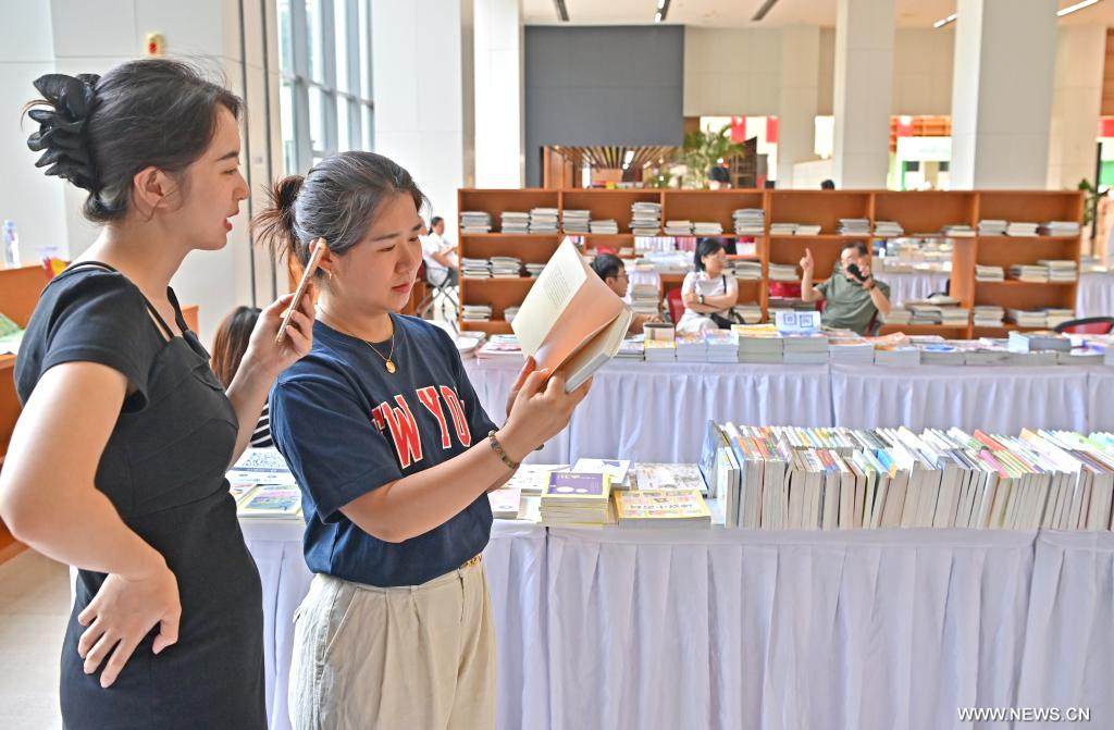 شنيانغ 16 أغسطس 2025 (شينخوا) في الصورة الملتقطة يوم 15 أغسطس 2025، أشخاص يتصفحون كتبا خلال معرض للكتاب في مكتبة مقاطعة لياونينغ في مدينة شنيانغ بمقاطعة لياونينغ بشمال شرقي الصين. وانطلق معرض الكتاب يوم الجمعة المنصرم، ويجمع أكثر من 30 ناشرا وأكثر من 10 آلاف نوع من الكتب.