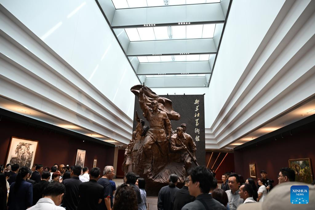 بكين 27 أغسطس 2025 (شينخوا) افتتحت وكالة أنباء شينخوا يوم الثلاثاء الماضي معرضا فنيا يسلط الضوء على حرب المقاومة الشعبية الصينية ضد العدوان الياباني.