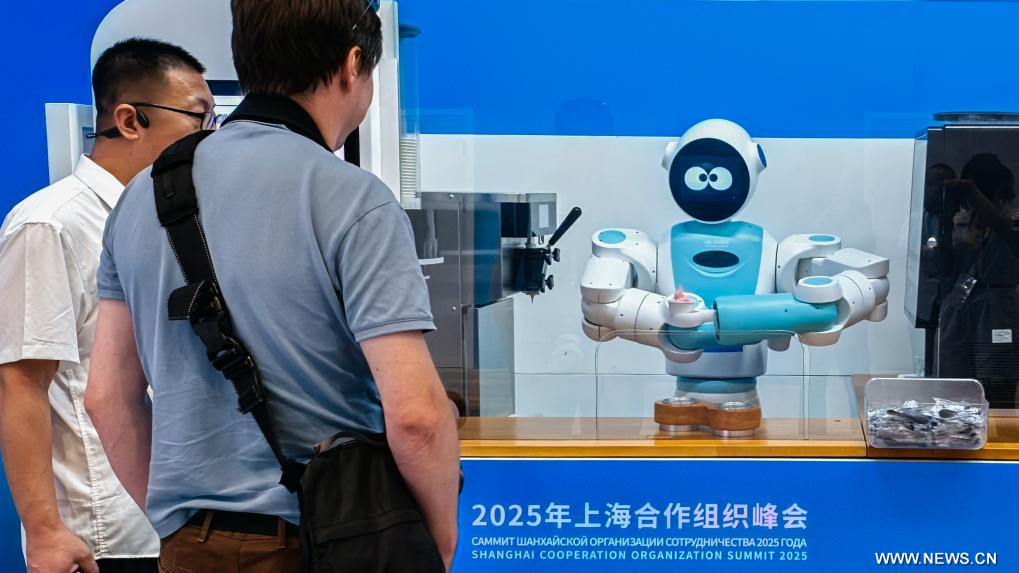تيانجين أول سبتمبر 2025 (شينخوا) في الصورة الملتقطة يوم 30 أغسطس 2025، روبوت يحضر الآيس كريم للصحفيين في المركز الإعلامي لقمة منظمة شانغهاي للتعاون 2025 في بلدية تيانجين بشمالي الصين.