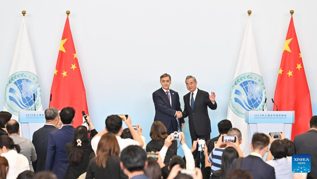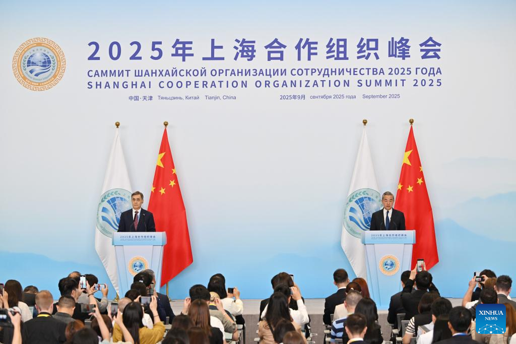 تيانجين أول سبتمبر 2025 (شينخوا) سلط وزير الخارجية الصيني وانغ يي اليوم (الاثنين) الضوء على سلسلة من النتائج التي تحققت في قمة منظمة شانغهاي للتعاون 2025 في تيانجين، الصين.