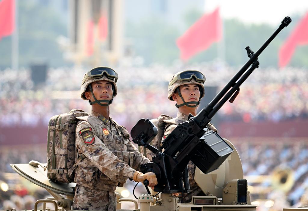 بكين 4 سبتمبر 2025 (شينخوا) في الصورة الملتقطة يوم 3 سبتمبر 2025، جانب من التجمع الحاشد الذي أقيم في بكين بمناسبة الذكرى الـ80 للانتصار في حرب المقاومة الشعبية الصينية ضد العدوان الياباني والحرب العالمية ضد الفاشية.