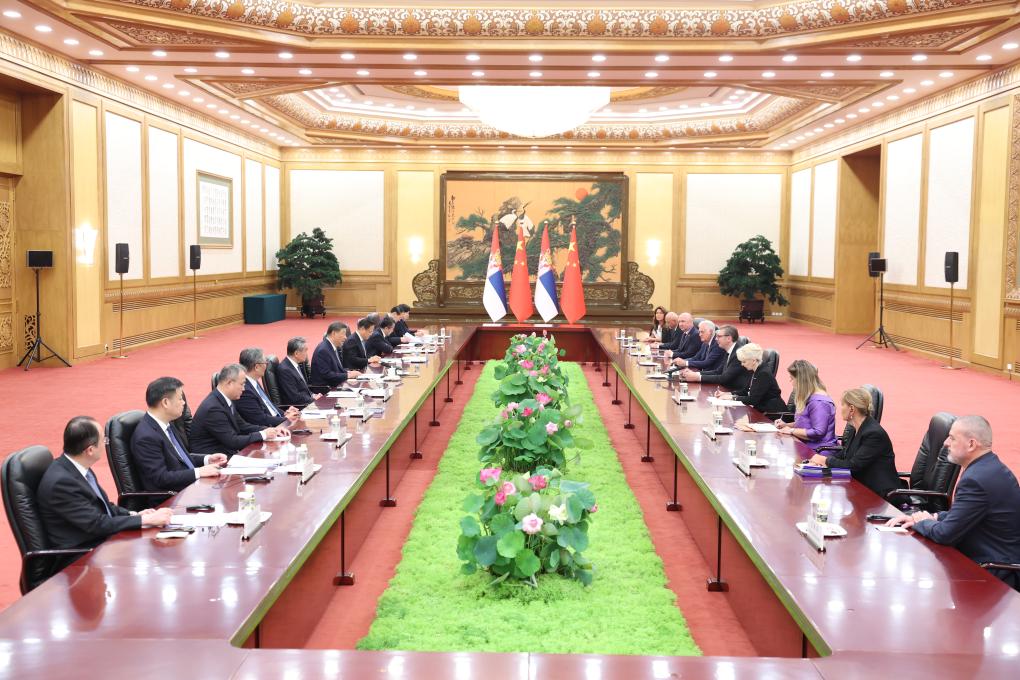 وأكد أن على الجانبين تعزيز مواءمة استراتيجيات التنمية لديهما، والاستفادة الكاملة من ترتيبات التيسير مثل اتفاقية التجارة الحرة والإعفاءات المتبادلة من التأشيرات والرحلات الجوية المباشرة، وتعميق التعاون في مجالات تشمل الذكاء الاصطناعي والاقتصاد الرقمي والطاقة الجديدة، من أجل دفع العلاقات الصينية-الصربية بشكل أكبر.