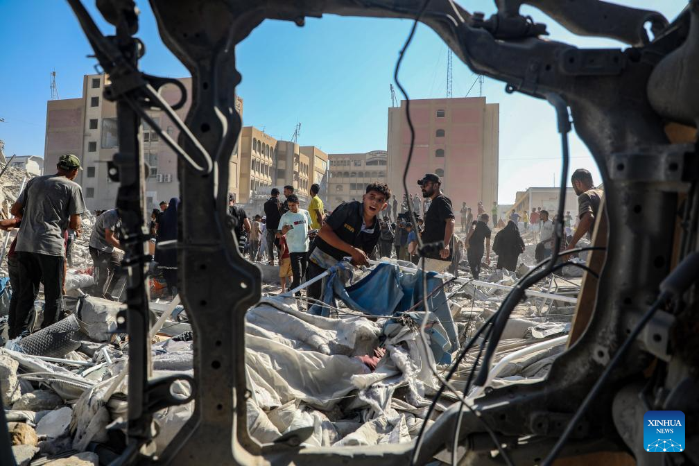 وقال الشهود لوكالة أنباء ((شينخوا)) إن الجيش الإسرائيلي قصف البرج الواقع في وسط مدينة غزة ما أدى إلى انهياره بالكامل، وأوضحوا أن المبنى كان يضم عشرات الشقق التي تؤوي عائلات نزحت من مناطق أخرى في القطاع، إضافة إلى مكاتب لمؤسسات مدنية من بينها المقر الرئيسي للمركز الفلسطيني لحقوق الإنسان.