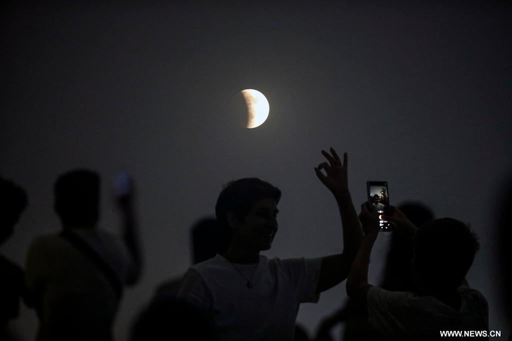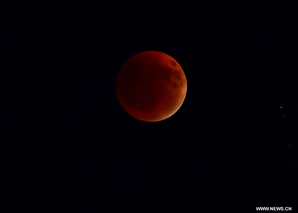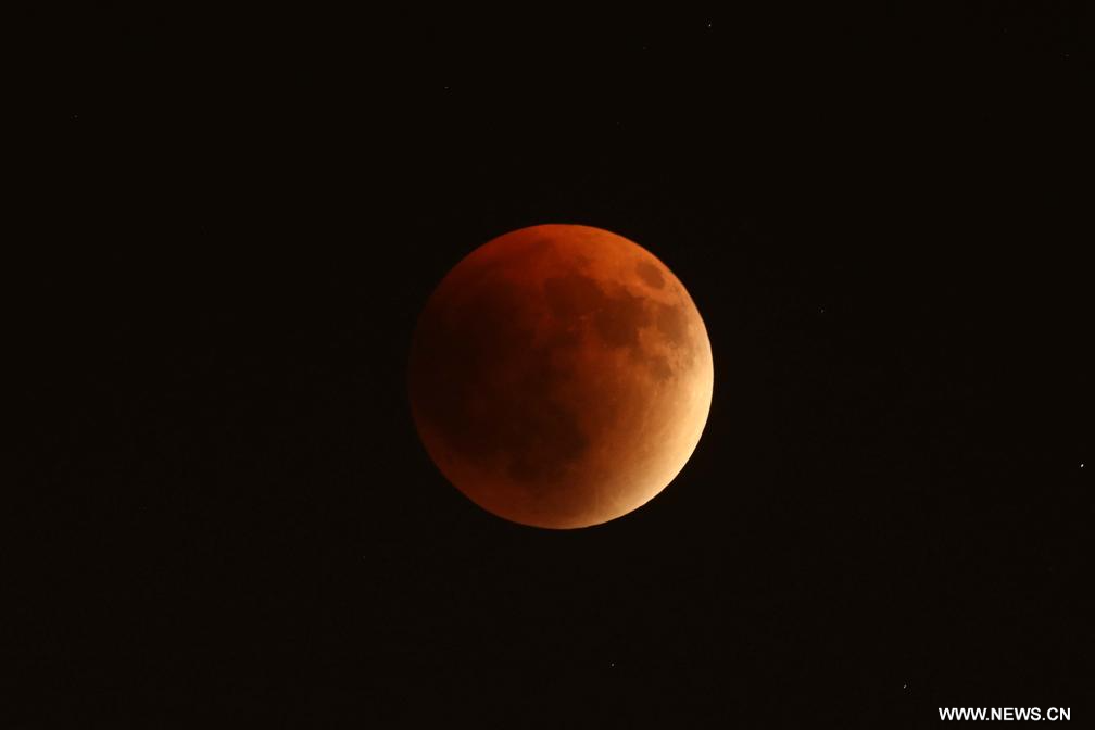 عمّان 8 سبتمبر 2025 (شينخوا) في الصورة الملتقطة يوم 7 سبتمبر 2025، مشهد لخسوف القمر في العاصمة الأردنية عمّان.