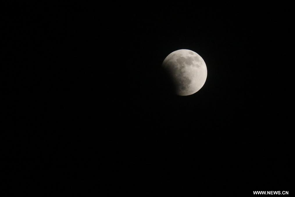 الخرطوم 8 سبتمبر 2025 (شينخوا) في الصورة الملتقطة يوم 7 سبتمبر 2025، مشهد لخسوف القمر في العاصمة السودانية الخرطوم.