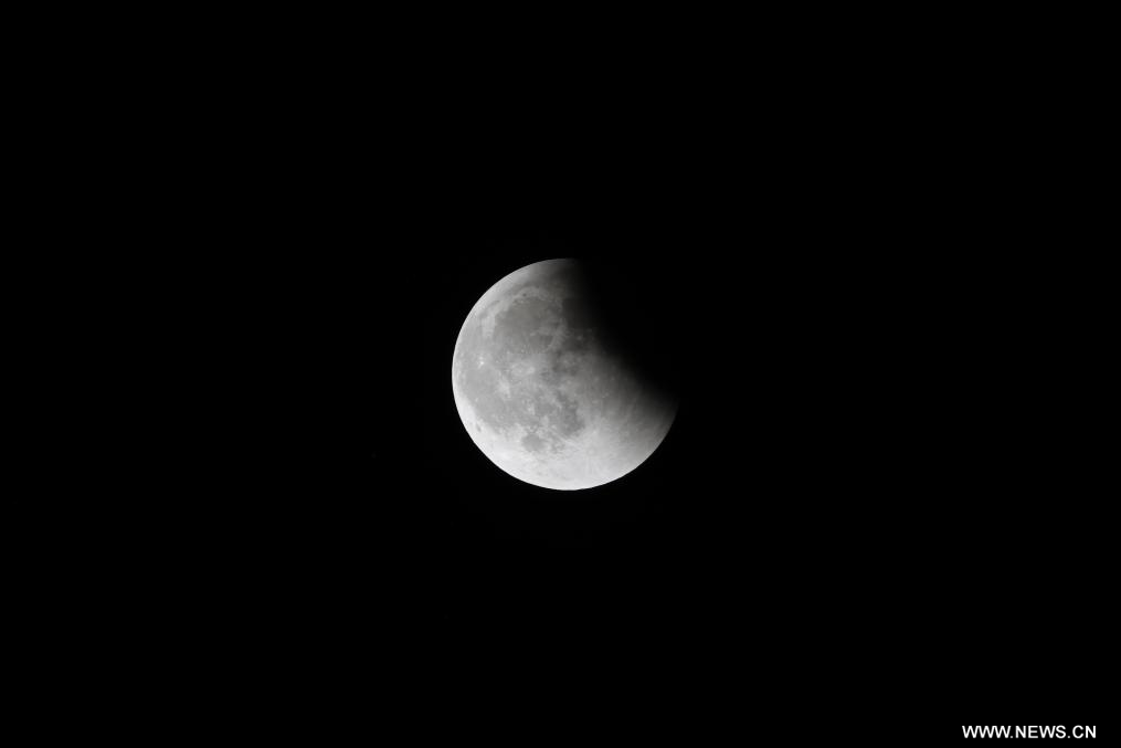 الرياض 8 سبتمبر 2025 (شينخوا) في الصورة الملتقطة يوم 7 سبتمبر 2025، مشهد لخسوف القمر في العاصمة السعودية الرياض.