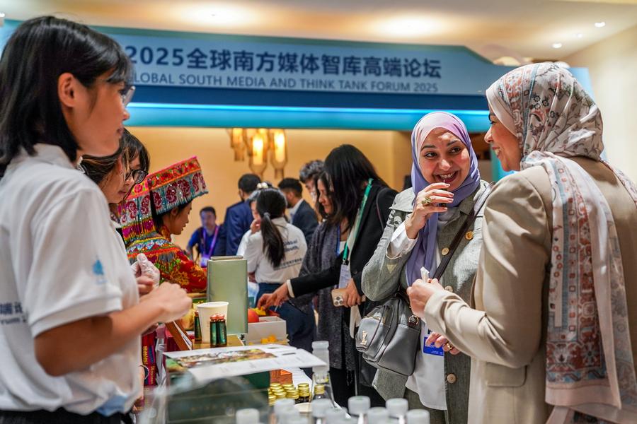 ضيوف يتذوقون الأصناف المميزة في مكان انعقاد حفل افتتاح منتدى وسائل الإعلام ومراكز الأبحاث للجنوب العالمي 2025 في مدينة كونمينغ بمقاطعة يوننان في جنوب غربي الصين في 6 سبتمبر 2025. (شينخوا)
