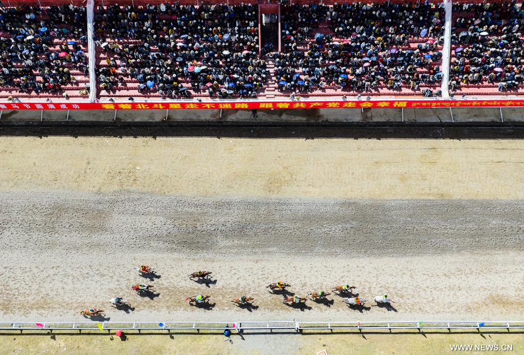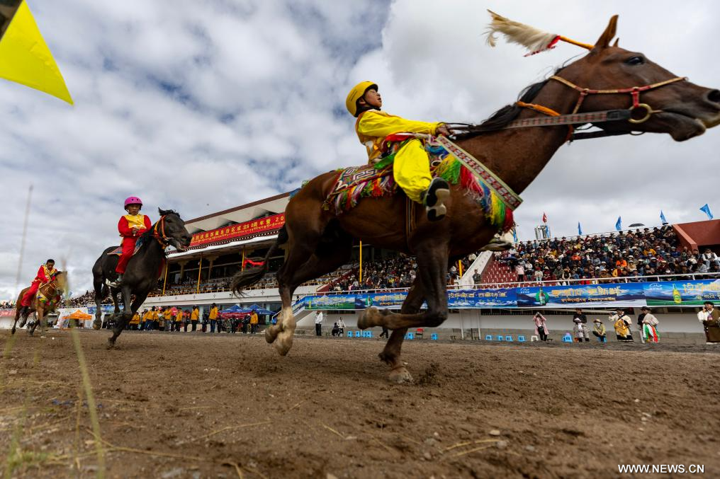 ناتشيوي 8 سبتمبر 2025 (شينخوا) في الصورة الملتقطة يوم 7 سبتمبر 2025، جانب من مهرجان تقليدي سنوي لسباقات الخيل في ناتشيوي بمنطقة شيتسانغ ذاتية الحكم بجنوب غربي الصين.