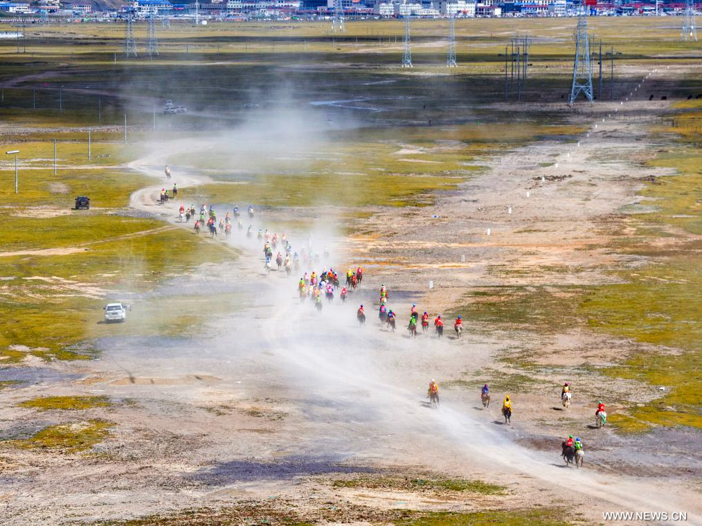 ناتشيوي 8 سبتمبر 2025 (شينخوا) في الصورة الملتقطة يوم 6 سبتمبر 2025، جانب من مهرجان تقليدي سنوي لسباقات الخيل في ناتشيوي بمنطقة شيتسانغ ذاتية الحكم بجنوب غربي الصين.